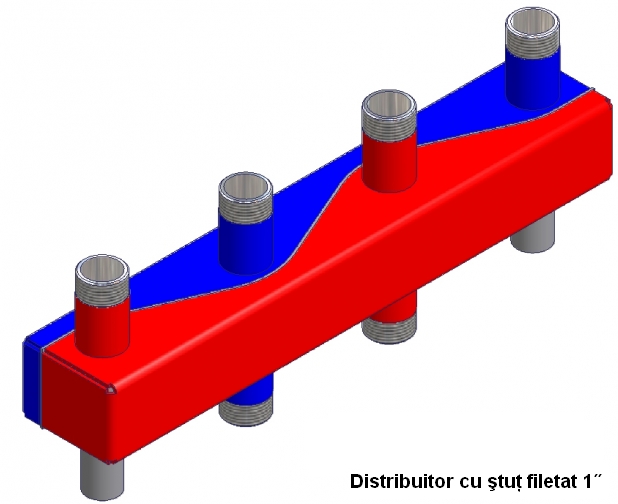 Distribuitor combinat tur-retur pentru circuitele de încălzire.
