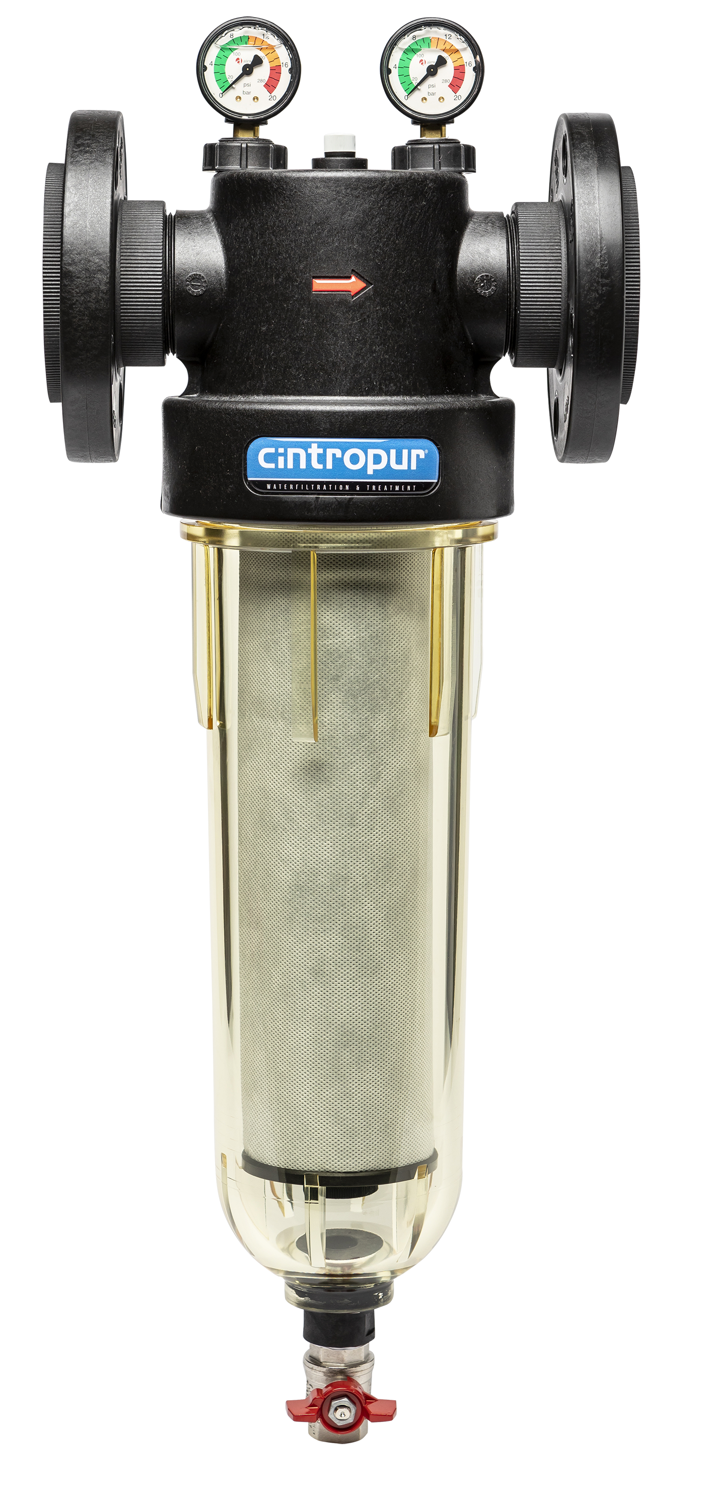 Prevăzute cu elicea CINTROPUR care imprimă fluxului de apă un efect centrifug ce duce la precipitarea elementelor mai grele în partea de jos a filtrului, în timp ce manşonul filtrant asigură filtrarea finală la fineţea aleasă.