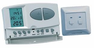 Cronotermostat de ambianță electronic, programabil, cu radiofrecvență și afișaj digital.