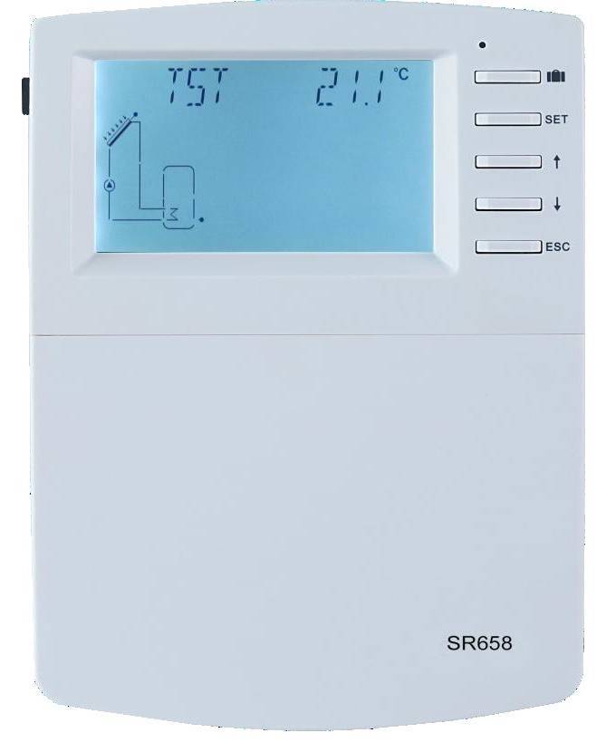 Regulatorul diferențial de temperatură SR 658 este un regulator destinat gestionării sistemelor solare termice. Poate gestiona 19 sisteme solare termice.