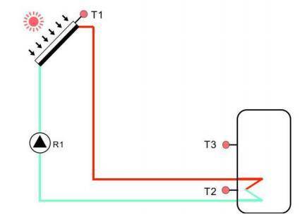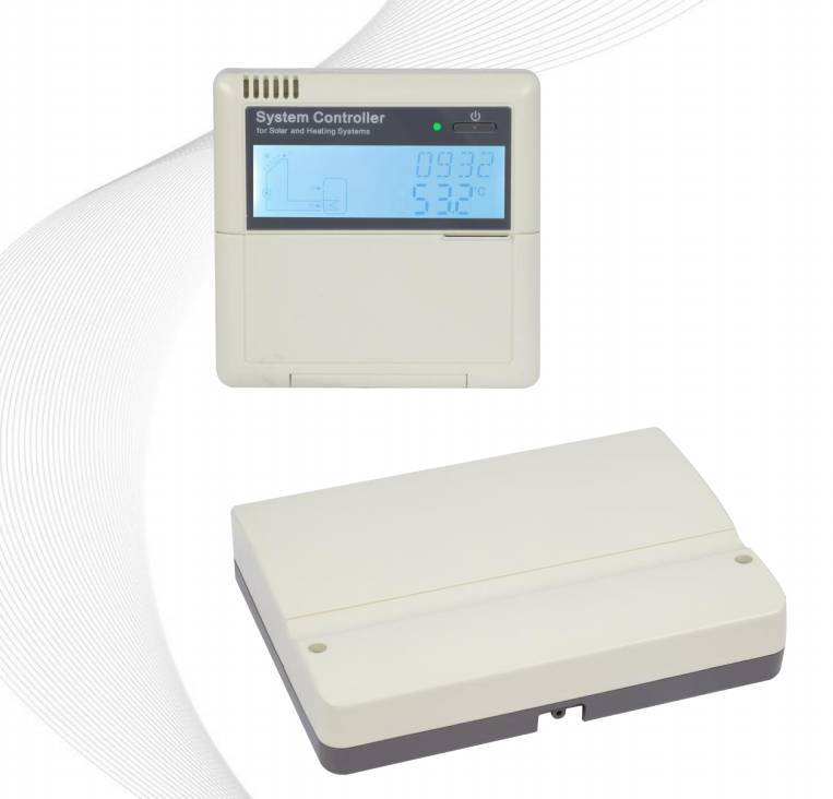 Regulator diferenţial de temperatură pentru sisteme solare, cu 4 intrări şi 5 ieşiri. Gestionează funcționarea unui sistem solar format dintr-un câmp solar + un rezervor + o pompă de circulație solară + încălzirea auxiliară cu rezistență electrică a rezervorului.