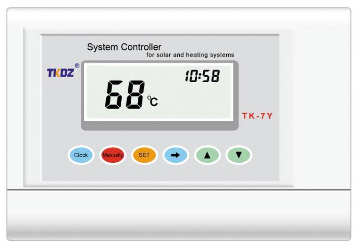 Regulatorul solar TK+7Y este un regulator destinat sistemelor solare termice presurizate. Permite gestionarea încălzirii apei din rezervor cu ajutorul unei rezistențe electrice pentru menținerea acesteia la un nivel presetat indiferent de radiația solară disponibilă.